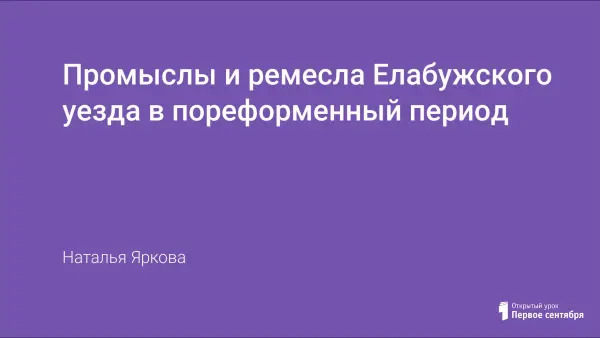 Занятие изучает историю родного края. Материал урока расширяет знания учащихся по краеведению. Они знакомятся с промыслами и ремеслами родного края после отмены крепостного права.