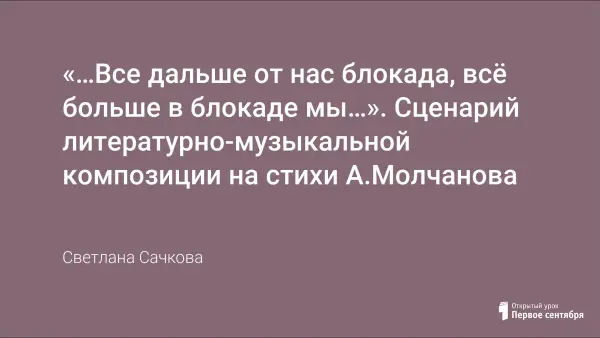 Материалы для проведения литературно-музыкальной композиции подобраны таким образом, чтобы воспитать у подрастающего поколения чувство уважения к событиям Великой Отечественной войны, чувство благодарности и гордости ко всем, кто пережил это тяжелое для страны время, чтобы заинтересовать обучающихся историей Великой Отечественной войны, а также познакомить ребят с творчеством поэта Анатолия Молчанова, жителя блокадного Ленинграда, жителя нашего города, чье имя в апреле 2014 года было занесено в Золотую книгу Санкт-Петербурга. Актуальность данной работы заключается в её правдивости, в действительном отображении фактов с помощью поэтической литературы, созданной непосредственным участником исторических событий.