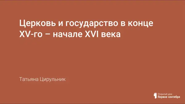 Цели урока: проследить какими были изменения в положении Русской православной церкви; рассмотреть историю Соловецкого, Иосифо-Волоколамского и Троице-Сергиева монастырей; раскрыть причины спора между иосифлянами и нестяжателями; показать суть ересей второй половины XV-го – первой половины XVI века; сформировать представления о теории "Москва – третий Рим".