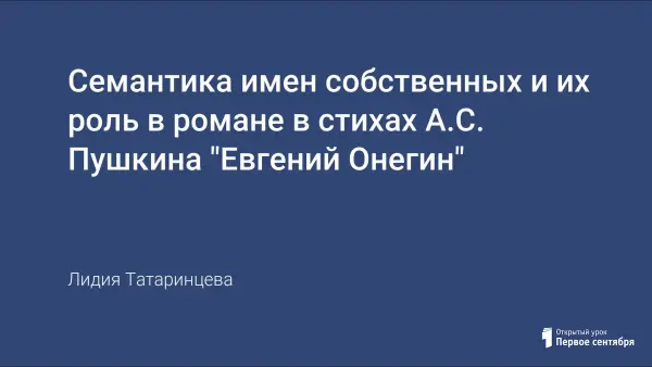 Цель урока – показать содержательную сторону имен собственных в художественном пространстве романа «Евгений Онегин», их роль в раскрытии характеров героев, осмыслении авторского замысла писателя и идеи произведения.