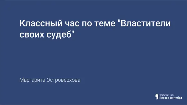 Классный час посвящен воспитанию индивидуальной личности, осознающей ответственность за собственное будущее. Эта работа, по сути, методичка классного руководителя с планом действий и практическими наработками на год.