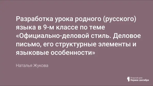 Задачи урока: расширять понятие об официально-деловом стиле, структурных элементах и языковых особенностях делового письма;