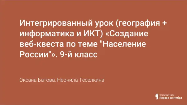 Интегрированный урок (география + информатика и ИКТ) «Создание веб-квеста по теме "Население России"». 9-й класс