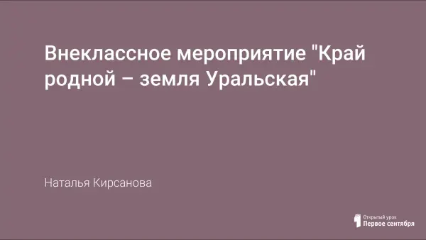 Внеклассное мероприятие «Край родной – земля Уральская» посвящено 450-летию со дня добровольного присоединения Башкирии к Русскому государству. Занятие расширяет кругозор детей, закрепляет знания о родном крае, республике Башкортостан, России.