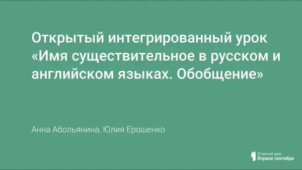 Предлагаем вашему вниманию план-конспект интегрированного урока русского и английского языков во 2-м классе по теме «Имя существительное. Обобщение». Данную методическую разработку можно использовать на уроках при повторении и обобщении данной темы независимо от выбранного вами УМК, т.к. языковой материал является доступным и приемлемым в плане понимания для данного возраста. Цель урока: создание условия для сравнения имени существительного в русском и английском языках; выход к общему умозаключению, в чём сходство и различие признаков существительных.