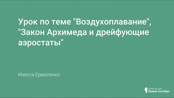 Урок формирует представления о строении воздушной оболочки Земли, истории воздухоплавания и физических законов полетов дирижаблей и аэростатов, законе Архимеда. Урок представлен в виде лекции-беседы при изучении нового материала. В работе доказано, что в воздухоплавании, как и в водной среде, действует закон Архимеда. За дирижаблями было прошлое и за ними, скорее всего, будущее.