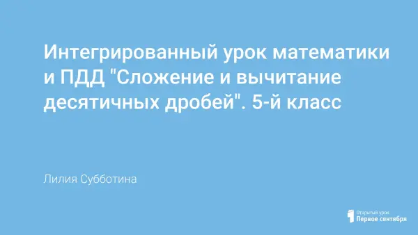 Интегрированный урок математики и ПДД проводится с целью выяснить навыки сравнения десятичных дробей, сложения и вычитания десятичных дробей, закрепить правила сложения и вычитания десятичных дробей, умения применять их к решению задач, повторить и закрепить правила дорожного движения.