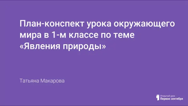 Урок проверяет, уточняет и расширяет знания детей о явлениях природы (названия, характеристика) и формирует понятие «явление природы».