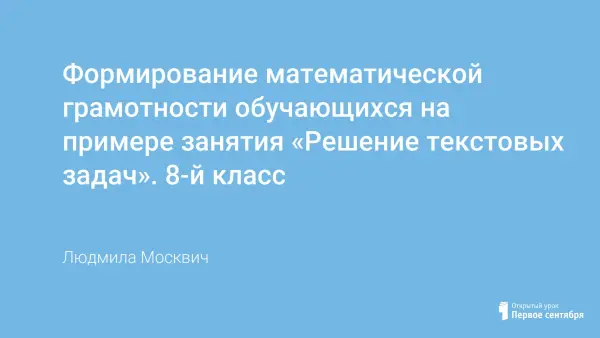 Сегодня на первое место в мире выходит потребность быстро реагировать на все изменения, происходящие в жизни, умение самостоятельно находить, анализировать, применять информацию. Главным становится функциональная грамотность, так как это «способность человека решать стандартные жизненные задачи в различных сферах жизни и деятельности на основе прикладных знаний». Одним из ее видов является математическая грамотность. Сегодня я предлагаю вам побывать в роли учеников на занятии по теме «Решение текстовых задач».