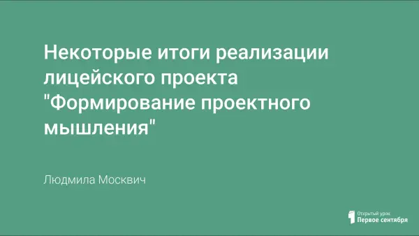 Стратегическая цель Программы развития нашего лицея связана с формированием и развитием нового поколения обучающихся, педагогических кадров, детско-взрослых коллективов, обладающих аналитическими, рефлексивными умениями, владеющих способами коммуникации, имеющих проектное мышление и способных организовать деятельность в рамках жизненной стратегии. В рамках Программы развития нашего лицея на 2015-2022 года была реализована подпрограмма «Формирования проектного мышления». Сегодня в лицее есть все возможности для развития проектного мышления с помощью особого вида деятельности учащихся - проектной деятельности. Проектное мышление носит методологический характер.