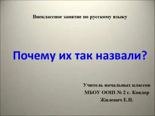 Внеклассное занятие по русскому языку «Почему их так назвали?» дает понятие о науке – этимологии; исследует исторические корни слова; знакомит с происхождением слов. Занятие проводится в форме игры, с презентацией и заданиями.