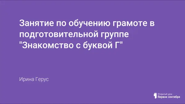 Цель занятия: познакомить с буквой "Г"; закрепить знания детей о звуках – гласных, согласных (твердых, мягких); совершенствовать навыки звукового анализа слов; учить составлять предложения по схеме; готовить руку к письму – проводить изогнутые линии, обводку, штриховку.