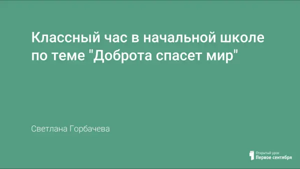Классный час в начальной школе по теме "Доброта спасет мир"