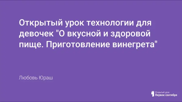 Цели: научить готовить салат-винегрет, приемам нарезки овощей, приемам декорирования салатов, знанию полезных веществ, содержащихся в овощных культурах; развитие памяти, внимания, логического мышления, мелкой моторики.
