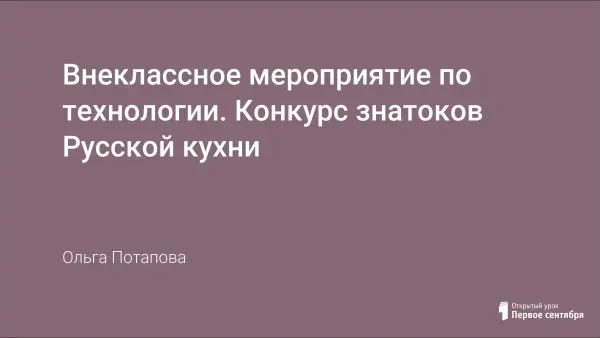 Внеклассное мероприятие разработано для учащихся 6-8-х классов и призвано стимулировать познавательный интерес к предмету, углубляя знания учащихся об истории русской кухни, которая является составной частью русского быта, определявшего обычаи и нравы людей.