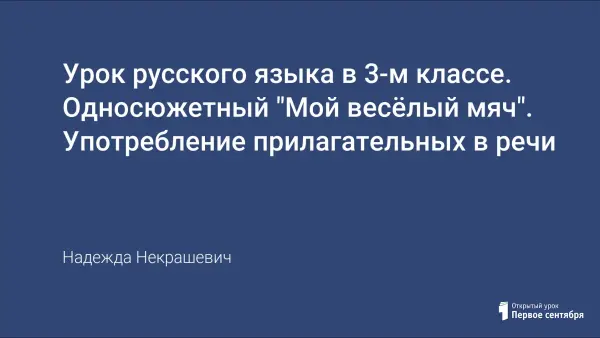 Урок в 3-м классе призван повторить существенные признаки имени прилагательного, формировать умение употреблять их в устной и письменной речи, повторить правописание слов с изученными ранее орфограммами.