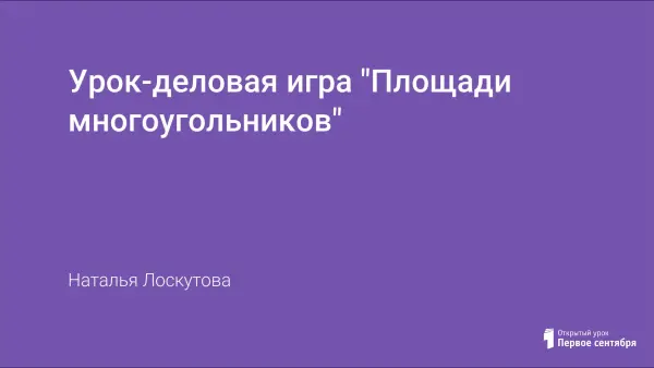 Цель урока: обобщить и закрепить знания о площадях плоских фигур, совершенствовать навыки решения задач на применение формул вычисления площадей многоугольников; показать практическую направленность темы; активизировать работу учащихся за счет вовлечения в игру, вырабатывать умение мыслить системно, пробуждая стремление к поиску новых идей.