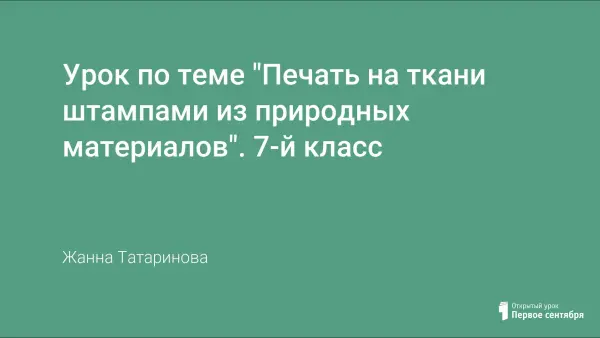 Урок входит в раздел «Рукоделие». Учащиеся знакомятся с различными видами декоративно-прикладного искусства: лоскутная техника, вышивание, вязание, художественная роспись ткани. Урок знакомит с традиционными способами окрашивания ткани, распространенными на территории России. Дети учатся печатать на ткани природными материалами (листьями). Урок развивает творческое воображение, художественный вкус.
