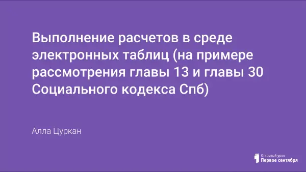 Материал может быть использован при проведении урока по теме «Электронный процессор» на базовом уровне изучения программы. Исходные данные для проведения расчетов могут использоваться не только на примере изучения Социального кодекса Санкт-Петербурга, но и для любого другого территориального органа РФ. Расчет стоимости квартирной оплаты един на всей территории РФ.