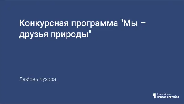В конкурсной программе для детей в возрасте от 9–14 лет представлены игровые задания, конкурсы, викторина, аукцион и загадки, которые формируют у детей бережное отношение к природе. Расширяется кругозор, стимулируется познавательная активность и творческие способности. Есть домашние задания.