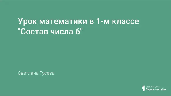Задачи урока: называть и записывать цифры натуральных чисел от 1 до 6; правильно соотносить цифру с числом предметов; называть состав числа; совершенствовать вычислительные навыки; развивать математическую речь, внимание, память, мышление, интерес к предмету; развивать логическое мышление, воображение, умение сравнивать, анализировать, классифицировать; формирование положительной мотивации через ситуации успеха.