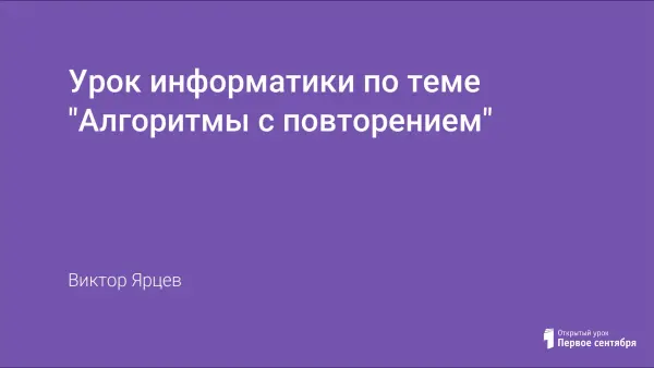 Урок знакомит шестиклассников с основными алгоритмическими конструкциями. Для связи с предыдущей темой – «ветвлением» и с целью проверки усвоения ключевых понятий темы в начале урока учащиеся выполняют интерактивный тест, созданный по шаблону А.Н. Комаровского. Решают задачу «наполнить бочку». Задания на слайдах можно выполнять с интерактивной доской и без нее.