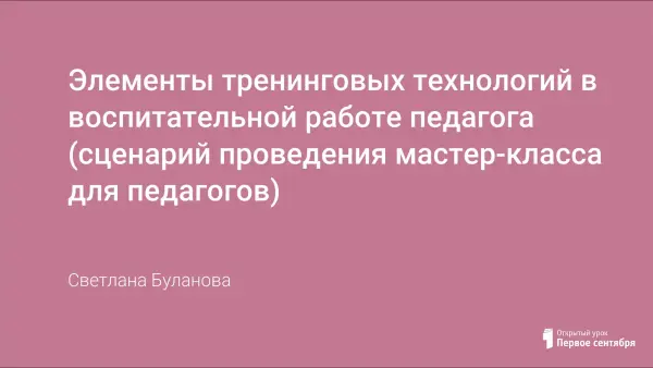 Представлена презентация к проведению мастер-класса для педагогов "Элементы тренинговых технологий в воспитательной работе педагога".