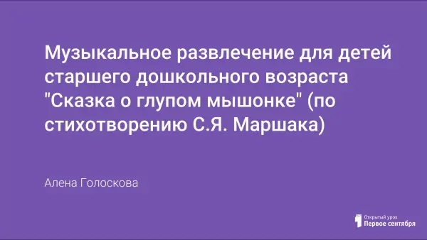 Цель музыкального развлечения: познакомить детей с творчеством С.Я. Маршака; обогащать духовный мир ребенка, приобщая к литературному и музыкальному наследию русского народа. Занятие развивает эмоциональную и познавательную сферы ребенка, формирует его музыкальные способности и творческий потенциал.