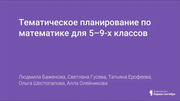 Представлено планирование уроков математики в 5-м классе, алгебры и геометрии – в 9-м классе.