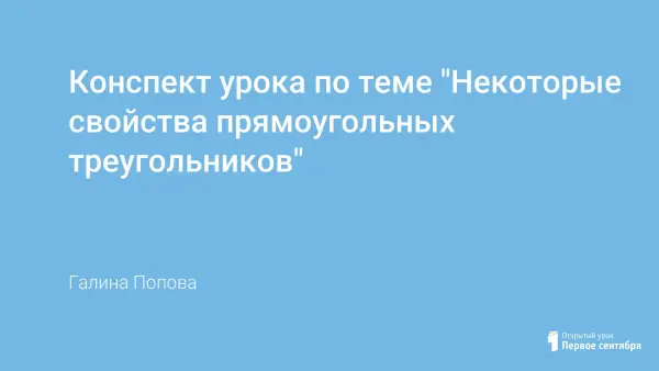 Материал можно использовать при работе по учебнику «Геометрия, 7-9» Л.С. Атанасяна и др. Урок объяснения нового материала, на котором в процессе выполнения практической работы учащиеся самостоятельно устанавливают зависимость между некоторыми элементами прямоугольных треугольников, формулируют и доказывают свойства прямоугольных треугольников, показывают применение изученных свойств при решении задач.