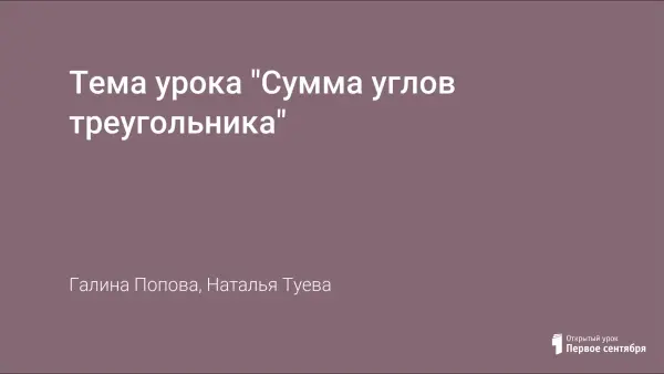 Цель урока: доказать теорему о сумме углов треугольника; доказать следствия из теоремы о суммы треугольника; научить решать задачи на применение нового материала.