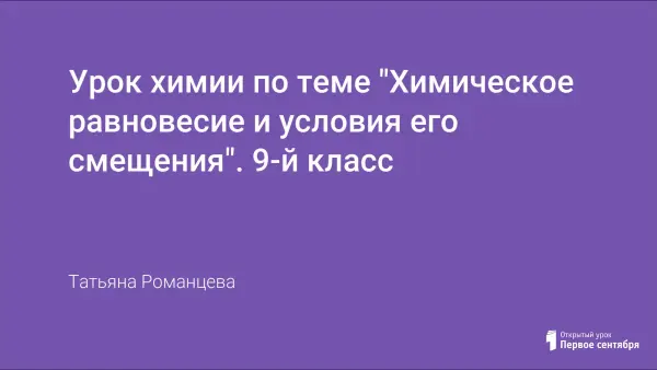 Основная цель урока - сформировать представление учащихся о химическом равновесии, условиях его смещения.