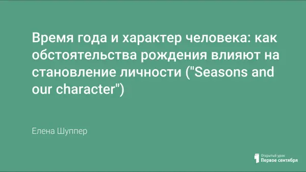 Для школьников любого возраста доступно и понятно можно объяснить тот факт, что характер формирует время года, в которое человек родился. От состояния погоды в момент рождения, матери, времени года и суток зависит будущая жизнь ребенка. Это возможно и на уроках английского языка. Начинать этот процесс можно уже со 2-го класса, постепенно вводя новый лексический материал, развивая представление по теме.
