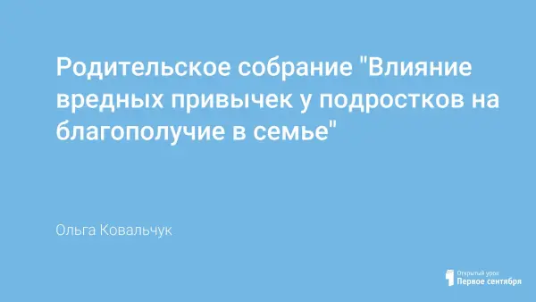 Не секрет, что причины многих школьных проблем мы находим в том, как строятся у ребенка взаимоотношения с родителями, насколько они друг другу доверяют, как наказывают или поддерживают его. Цель собрания: активизация позиции родителей, информирование о наиболее эффективных способах предупреждения и преодоления зависимости от вредных привычек у подростков.