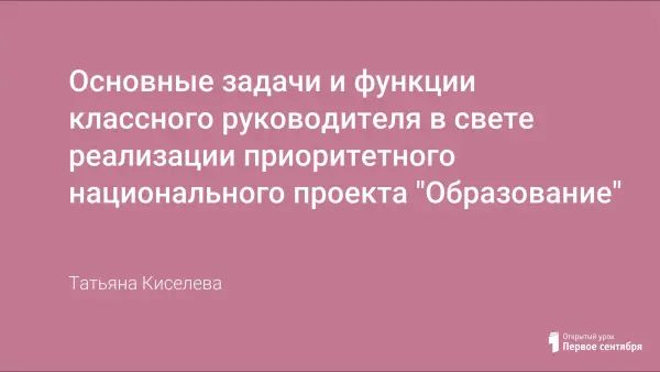 Статья посвящена рассмотрению основных задач и функций классного руководителя в свете реализации Приоритетного Национального проекта «Образование». Он может быть реализован только на основе полного учета интересов ребенка, т.е. педагоги должны заботиться о настоящем и будущем молодого человека, подготавливая его к сложным перипетиям жизненного пути.