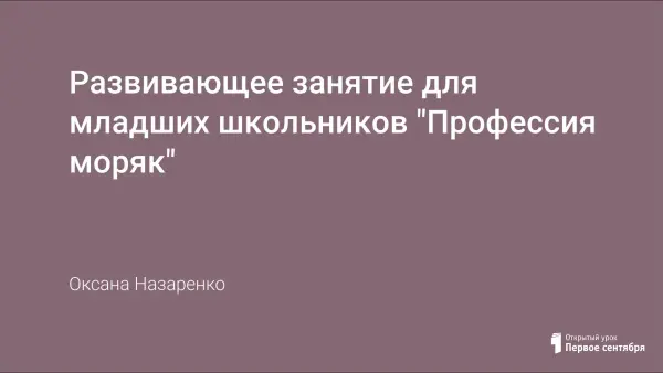 В статье представлена разработка развивающего занятия для младших школьников, направленного на развитие учебно-познавательной мотивации и знакомство с профессий моряк. С помощью представленной методики возможно формировать целостные знания, потребность в творческой деятельности, развивать познавательные, интеллектуальные и творческие возможности ребенка, расширять представления обучающихся о мире профессий.