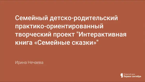 Проект направлен на стимуляцию совместной деятельности педагогов, родителей и детей в ходе создания книги сказок. В ходе реализации проекта родители получат возможность взаимодействия со своим ребенком. Родители примут участие в создании книжки-самоделки «Семейные сказки».