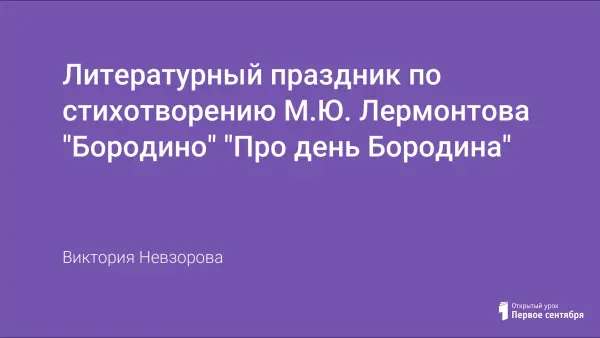 Литературный праздник посвящен одному из самых героических событий нашего прошлого – Бородинскому сражению. В этом году этому событию исполняется 200 лет. Многие исторические события, в которых русский народ проявил героизм, преданность родине, одержал победу, представляют собой предмет гордости русского народа. Мероприятие знакомит со стихотворением М.Ю. Лермонтова “Бородино”, его исторической основой, воспитывая у учащихся уважение к великому прошлому России.