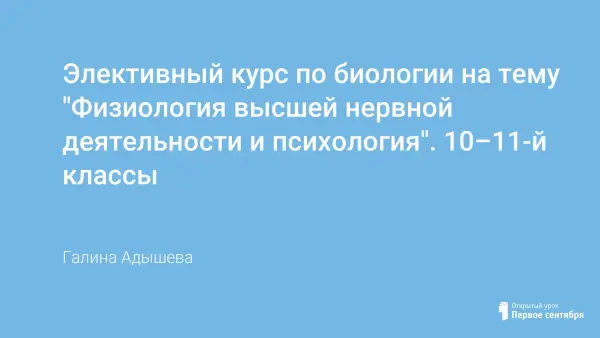 Элективный курс по биологии рассчитан на учащихся 10-11 классов для расширений и углублений знаний о центральной нервной системе, физиологии и психологии.