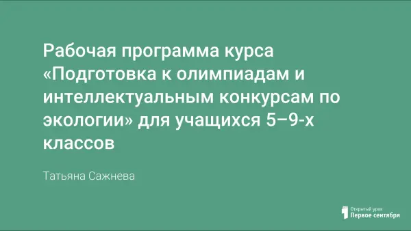 Подготовка школьников к олимпиадам и конкурсам, одно из актуальных направлений работы учителя. Цель данного курса: сформировать необходимые умения и навыки для решения олимпиадных задач различного уровня сложности, а также участия в конкурсных мероприятиях эколого-биологической направленности.