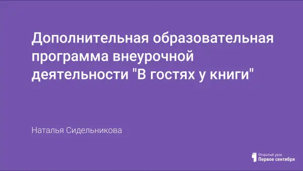 Данная программа предназначена для учащихся начальной школы и рассчитана на 4 года. Новизна программы внеклассных мероприятий по литературному чтению «В гостях у книги» состоит в решении проблемы организации внеурочного чтения. Она составлена с учетом интересов детей к произведениям, которые входят в сокровищницу детской литературы и литературы для детей, и обеспечивает чтение произведений различных по содержанию и тематике.