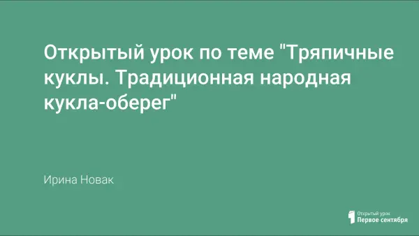 На уроке учащиеся знакомятся с историей возникновения тряпичной куклы, а также с технологией выполнения традиционной народной куклы-оберега.