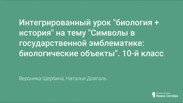 Интегрированный урок для учащихся 10-х классов разработан в околопредметном образовательном поле «история-биология» и предназначен к реализации в учебных заведениях повышенного образовательного уровня, а также в рамках прикладных курсов для старшеклассников. Форма проведения: регламентированная дискуссия / урок-проект. Личная образовательная задача ученика: научиться применять теоретические знания о биологических символах эмблематики стран для чтения государственных символов (гербов, флагов) и практической разработки их проектов.