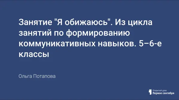 Занятие проводится в 5-6-м классе общеобразовательной школы и относится к циклу занятий по формированию коммуникативных навыков и формирования мотивации к самопознанию. В основе занятия лежит программа «Уроки общения для младших подростков» педагога-психолога Надежды Слободяник. Занятие переработано, дополнено и адаптировано к условиям нашего образовательного учреждения, с учетом особенностей детей. Целью является объяснить понятие «обида», выявить способы борьбы с обидой