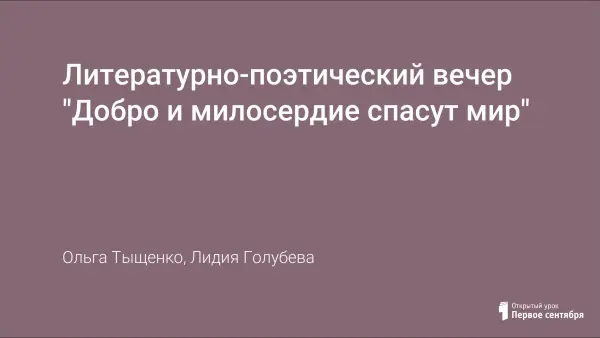 Литературно-поэтический вечер на нравственно-этическую тему "Добро и милосердие спасут мир" подводит воспитанников к мысли, что "счастлив воистину тот, в сердце кого доброта живет". В ходе вечера звучат стихи как известных поэтов, так и стихотворения воспитанников детского дома.