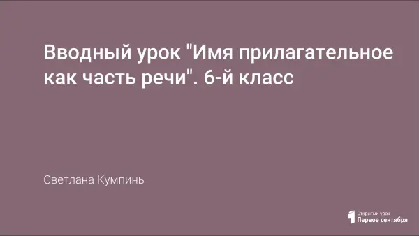 Цель урока: создание целевой установки на изучение всей темы, чтобы учащиеся могли представить ее целиком. Систематизировать изученное в 5-м классе об имени прилагательном, определить его морфологические признаки, синтаксическую функцию в предложении, показать роль прилагательного в речи и художественном тексте, развивать творческие способности учащихся.