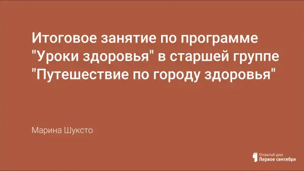 В старшей группе дети уже не только выполняют требования воспитателя поддерживать здоровый образ жизни, но и хотят знать, почему именно так, а не иначе. Объяснить ребенку можно только в том случае, если у него есть элементарные знания о строении организма человека. На занятии подводятся итоги изучения программы «Уроки здоровья», закрепляются и систематизируются знания детей.