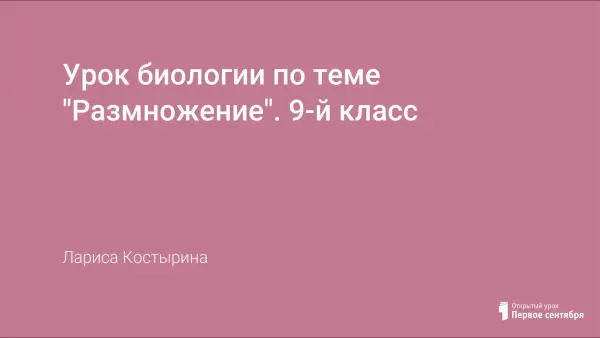 Урок является первым при изучении темы «Размножение» в 9-м классе. Так как данная тема изучалась в 6-м классе, то учащиеся вспоминают и дополняют данную тему. На уроке предусмотрена работа с дополнительными источниками информации, работа в группах.