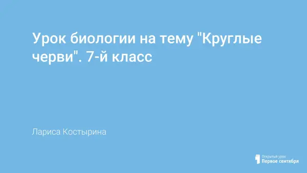 Данный урок является уроком изучения новой темы. Учащиеся проходят контроль знаний по теме «Плоские черви» и знакомятся с новой группой червей – типом «Круглые черви». Практически в течение всего урока подразумевается самостоятельная работа учащихся с текстом учебника, продолжается формирование навыков работы с параграфом, нахождение и выделение главной информации из текста. Учитель не является основным источником информации на всех этапах урока, он координирует и направляет работу учащихся.