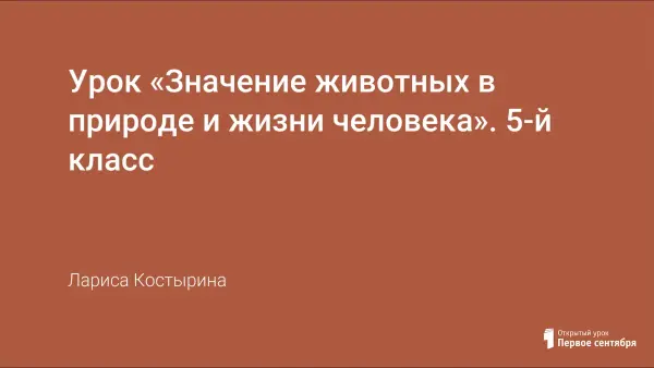 Данный урок в пятом классе является последним при изучении животных. Учащиеся с помощью учителя выясняют значение животных в природе и жизни человека.